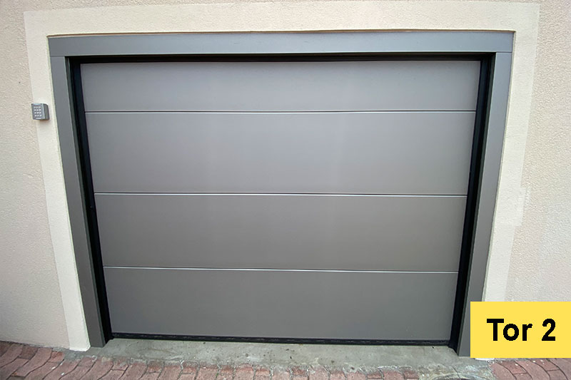 Das bestehendes Kipptor und ein Flügeltor haben wir durch diese zwei Sektionaltore ersetzt.
